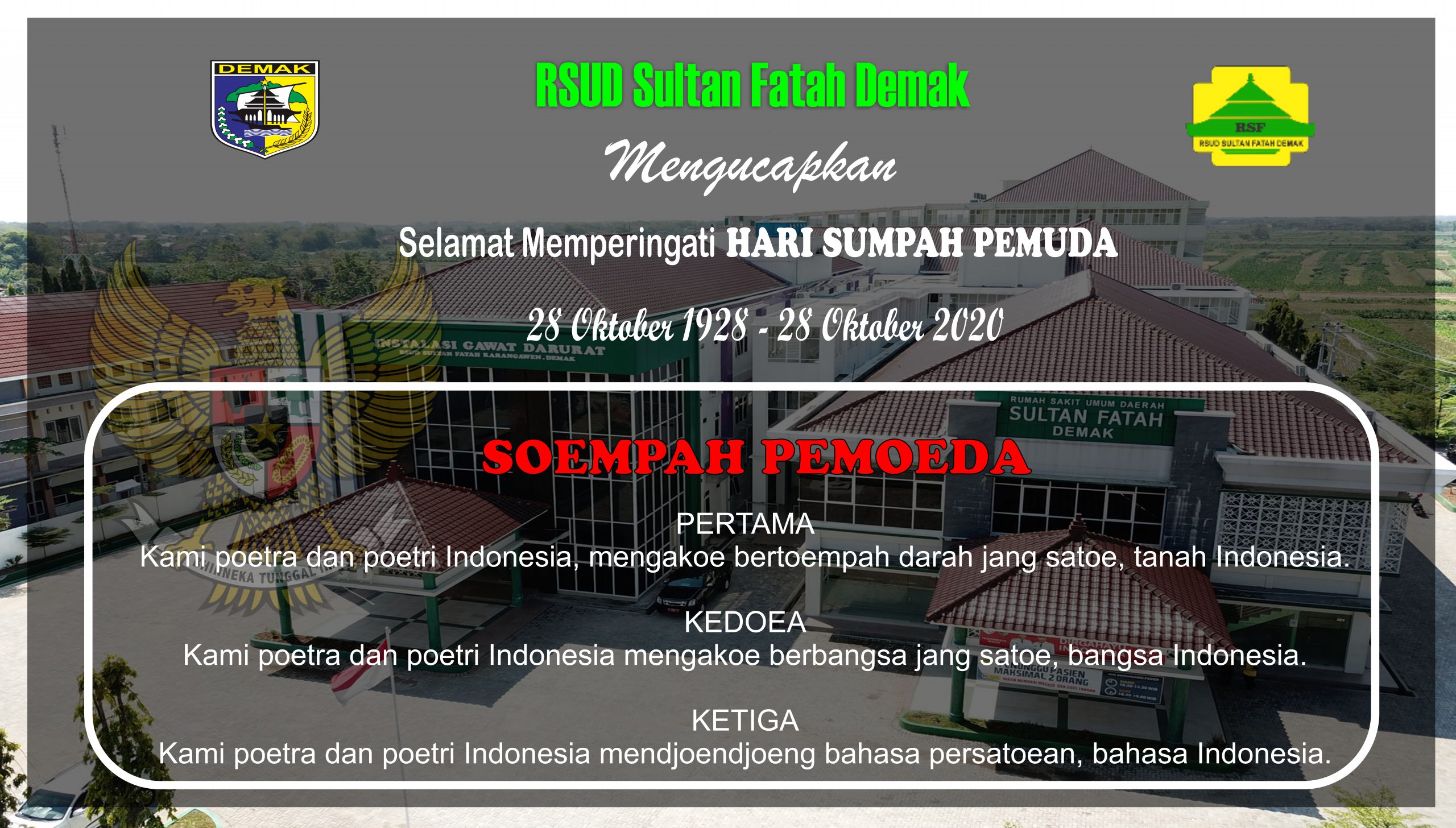 Sumpah Pemuda adalah satu tonggak utama dalam semangat untuk menegaskan cita-cita berdirinya negara Indonesia. Sumpah Pemuda merupakan keputusan Kongres Pemuda Kedua[1] yang diselenggarakan dua hari, 27-28 Oktober 1928 di Batavia (Jakarta). Keputusan ini menegaskan cita-cita akan ada “tanah air Indonesia”, “bangsa Indonesia”, dan “bahasa Indonesia”. AYOO PARA PEMUDA PEMUDI KOBARKAN SEMANGAT MELANJUTKAN CITA-CITA LUHUR BANGSA …
