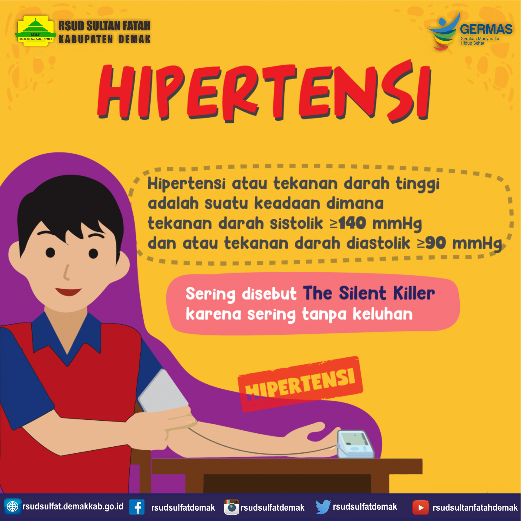 Setiap tahun pada tanggal 17 Mei diperingati Hari Hipertensi Sedunia. Hipertensi atau tekanan darah tinggi adalah suatu keadaan dimana tekanan darah sistolik ≥140 mmHg dan atau tekanan darah diastolik ≥90 mmHg. Sering disebut The Silent Killer karena sering tanpa keluhan.1 Hipertensi disebut sebagai the silent killer karena sering tanpa keluhan, sehingga penderita tidak mengetahui dirinya menyandang hipertensi dan baru diketahui setelah terjadi komplikasi. Kerusakan organ target akibat komplikasi Hipertensi akan tergantung kepada besarnya peningkatan tekanan darah dan lamanya kondisi tekanan darah yang tidak terdiagnosis dan tidak diobati. Organ-organ tubuh yang menjadi target antara lain otak, mata, jantung, ginjal, dan dapat juga berakibat kepada pembuluh darah arteri perifer.