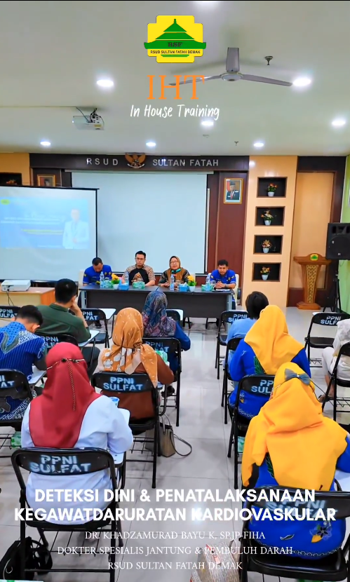 Sahabat Sultan, 6 Maret 2024 bertempat diaula Pati Unus RSUD Sultan Fatah, Dalam peningkatan Mutu layanan dan kualitas SDM RSUD Sultan Fatah Demak Rutin Menyelenggarakan In House Training.