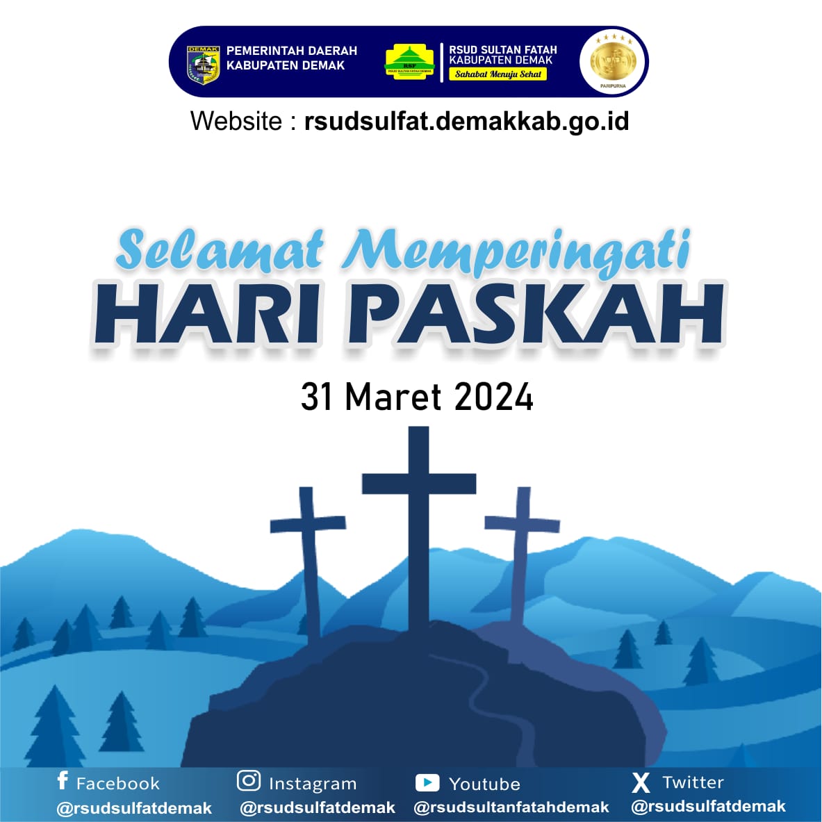 Peringatan Hari Paskah admin Maret 31, 2024 News 0 Komentar Navigasi pos Previous Previous post: Pelayanan Klinik RSUD Sultan Fatah Kabupaten Demak pada Jumát, 29 Maret 2024Next Next post: Pelayanan Klinik RSUD Sultan Fatah Kabupaten Demak pada Senin, 1 April 2024 Tinggalkan Balasan Batalkan balasanAlamat email Anda tidak akan dipublikasikan. Ruas yang wajib ditandai *Komentar * Nama * Email * Situs Web Simpan nama, email, dan situs web saya pada peramban ini untuk komentar saya berikutnya. Δ