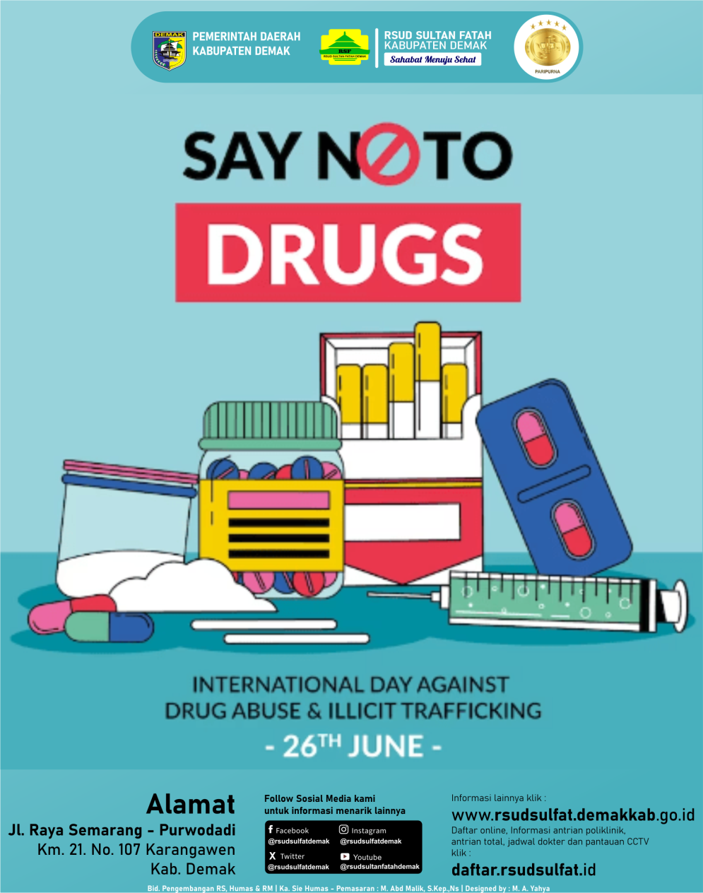 Hari anti narkoba internasional (HANI) bertepatan tanggal 26 Juni tiap tahunnya. Narkoba  kepanjangan dari Narkotika dan Obat-obatan yang mengandung zat adiktif/berbahaya dan terlarang) adalah zat atau obat baik yang bersifat alamiah, sintetis, maupun semi sintetis yang menimbulkan efek penurunan kesadaran, halusinasi, serta daya rangsang. Narkoba saat ini amat populer di kalangan remaja dan generasi muda bangsa Indonesia, penyalah gunaan narkoba ini telah merebak ke semua lingkungan. Bukan hanya dikalangan anak-anak nakal dan preman tetapi telah memasuki lingkungan terhormat lainnya termasuk lingkungan kampus dan sekolah.