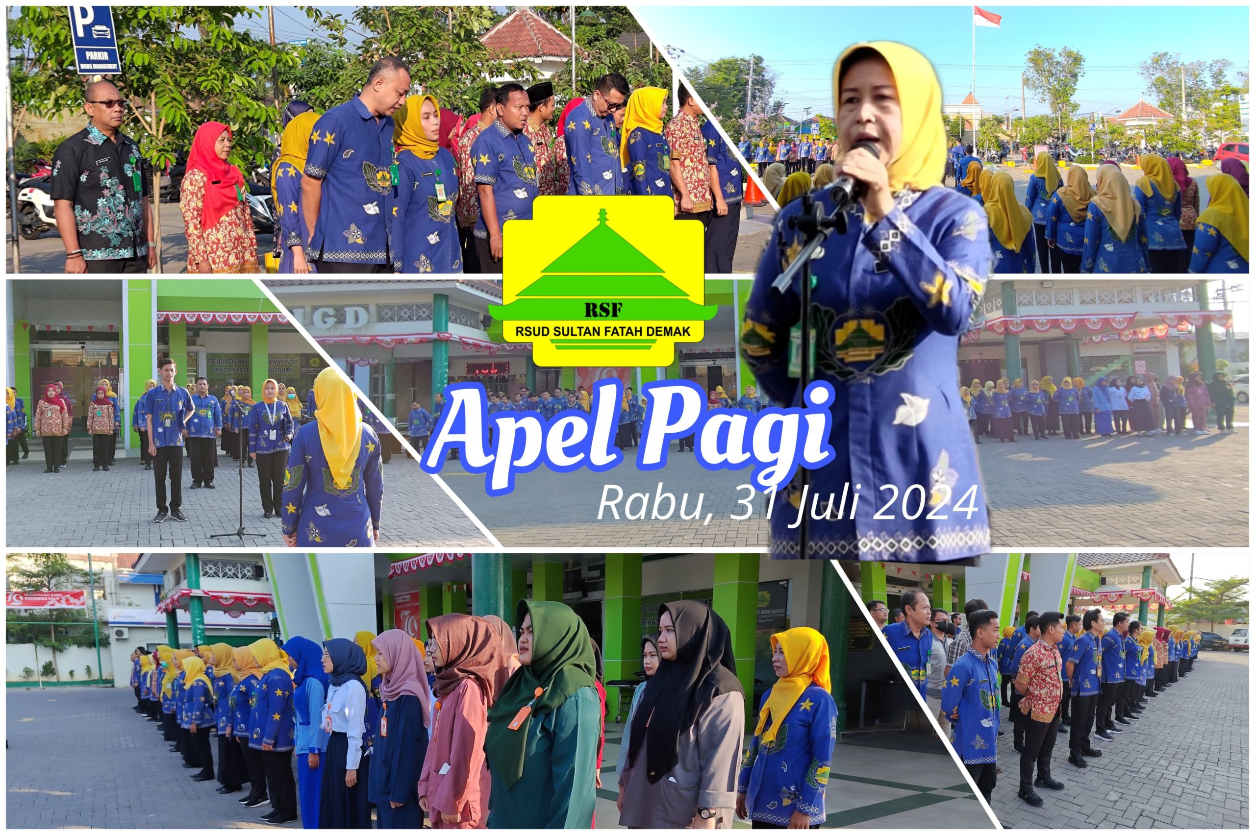 Peserta apel hari ini sebanyak 80 orang. Mulai tanggal 1 Agustus ada pelayanan postpartum di Jasmine ada beauty corner untuk creambath gratis bagi pasien yang ada tindakan dan cuci rambut bagi pasien yang tanpa tindakan. Beauty corner juga melayani facial bagi pasien ataupun petugas yang bisa membayar melalui koperasi. Inovasi ini bertujuan untuk meningkatkan pelayanan dan menarik bagi masyarakat agar memeriksakan kehamilan dan melahirkan di RSUD Sultan Fatah.