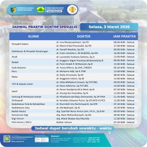 Pelayanan Klinik RSUD Sultan Fatah Kabupaten Demak pada Selasa,3 Maret 2026 admin Maret 3, 2026 News 0 Komentar Sahabat Sultan berikut kami informasikan jadwal Pelayanan Klinik RSUD Sultan Fatah Kabupaten Demak pada Selasa,3 Maret 2026
