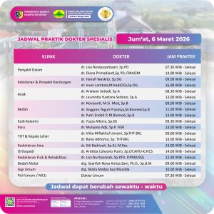 Pelayanan Klinik RSUD Sultan Fatah Kabupaten Demak pada Jum’at,6 Maret 2026 admin Maret 6, 2026 News 0 Komentar Sahabat Sultan berikut kami informasikan jadwal Pelayanan Klinik RSUD Sultan Fatah Kabupaten Demak pada Jum’at,6 Maret 2026