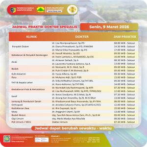 Pelayanan Klinik RSUD Sultan Fatah Kabupaten Demak pada Senin,9 Maret 2026 admin Maret 9, 2026 News 0 Komentar Sahabat Sultan berikut kami informasikan jadwal Pelayanan Klinik RSUD Sultan Fatah Kabupaten Demak pada Senin,9 Maret 2026