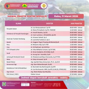 Pelayanan Klinik RSUD Sultan Fatah Kabupaten Demak pada Senin,11 Maret 2026 admin Maret 11, 2026 News 0 Komentar Sahabat Sultan berikut kami informasikan jadwal Pelayanan Klinik RSUD Sultan Fatah Kabupaten Demak pada Senin,11 Maret 2026