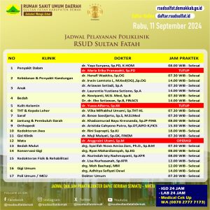 Assalamu’alaikum Sobat Sultan Selamat bergabung kepada dokter Spesialis terbaru kami di RSUD Sultan Fatah Kabupaten Demak Kehadiran Anda menjadi aset berharga dalam menyediakan pelayanan kesehatan…